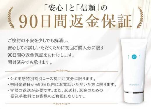 返金保証については、シミ実感特別割引コースの初回分のみです。