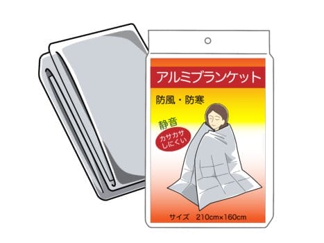 特に、避難時では毛布など大きくてかさばるものは持ち運ぶことが難しいため、『防寒用アルミシート』など防災バッグの中に簡単にしまっておけるものが便利です。