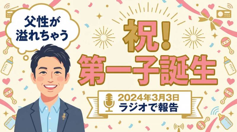 番組冒頭、共演者に対して「父親ぶっちゃって」「父性がでちゃうんだよな」などと、いつもと違う父親らしい一面をのぞかせながら、「子ども産まれたんですよ」とポツリ。 [1, 16] この突然の嬉しい報告に、スタジオもリスナーも驚きと喜びに包まれました。