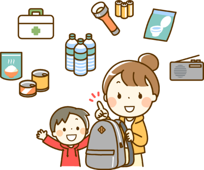 防災グッズには非常食や飲料水、ラジオや懐中電灯、救急用品などが含まれます。家族全員が自分の持ち物を確認し、必要なものを揃えることで、災害時にお互いを助け合いながら安全な場所へ避難することができます。
