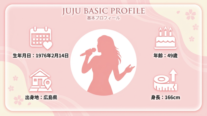JUJUさんの誕生日は1976年2月14日です。これにより、2025年の誕生日を迎えた時点での満年齢は49歳となります。この情報は、公式サイトやWikipediaなど、複数の信頼できる情報源で一致しており、確かな情報と言えるでしょう。バレンタインデーという特別な日に生まれたことも、ファンの間では有名なエピソードです。