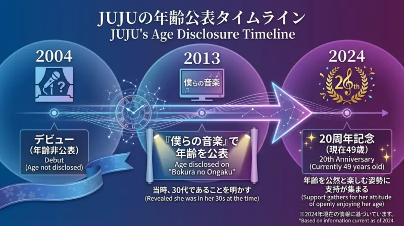 JUJUさんはデビュー後、長らく年齢を公にしていませんでした。そのミステリアスなスタンスが、かえってファンの「年齢を知りたい」という探究心を刺激し、様々な憶測を呼ぶ一因となっていました。年齢を明かさないことで、音楽そのもので評価されたいという強い意志が感じられます。