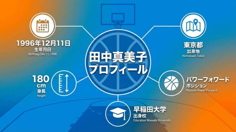 田中真美子さんは、1996年12月11日生まれの現在29歳。東京都三鷹市出身で、身長180cm、体重70kgという恵まれた体格を持つ元バスケットボール選手です。愛称は「マナ」と呼ばれ、ポジションはセンターおよびパワーフォワードを務めていました。兄はラグビー選手の田中真一さんで、スポーツ一家に育ちました。