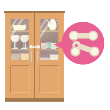 家具を固定することで、地震時の家具転倒を防いでも、家具の扉が簡単に開いてしまうと中のモノが飛び出してくる危険があります。扉自体が急に開くのも危険が伴います。